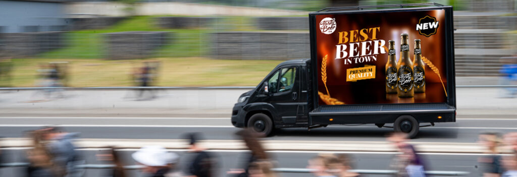 Die CoolLite Trucks 18/1 liefern Werbung auf LKW im klassischen Großformat – mit LED-Hinterleuchtung und hoher Strahlkraft auch in den Abendstunden. Ideal für Hauptzufahrten und urbane Anreise-Routen. Die CoolLite Scooter bringen deine Botschaft in Bereiche, in die größere Fahrzeuge nicht vordringen: an Campingplatz-Zufahrten, vor Hotspots oder in den Innenstädten der Festival-Orte. Die CoolLite Bikes stehen für Werbung am Fahrrad: flexibel, nachhaltig und perfekt für Mikro-Routen rund um Bahnhöfe, Shuttle-Punkte und Festivalgelände.