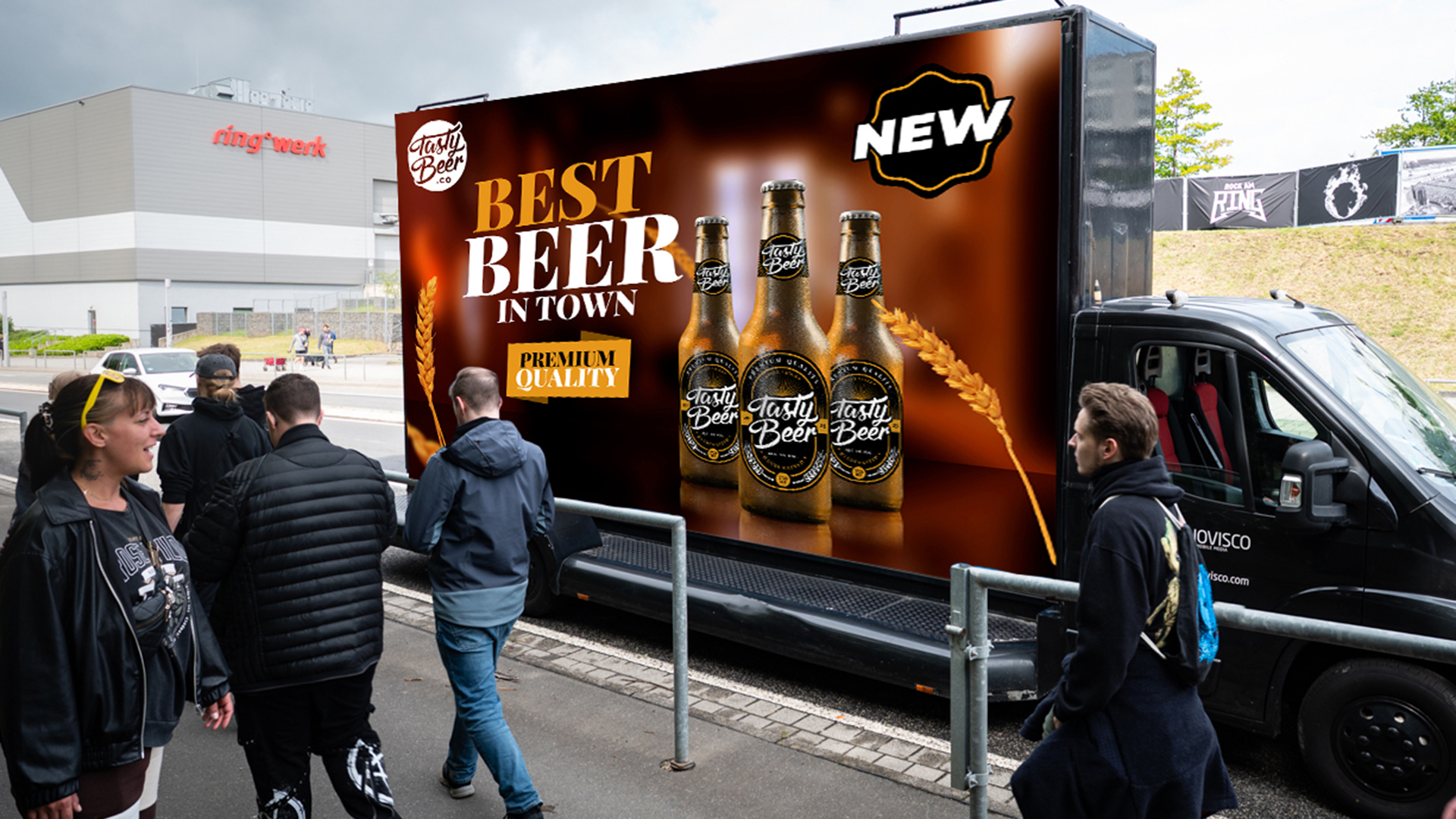 Der Clou: Du erreichst diese Zielgruppe, ohne selbst Festival-Sponsor werden zu müssen. Exklusivitätskonflikte mit Hauptsponsoren entfallen, denn die Werbung vor dem Festival spielt sich im direkten Umfeld ab – nicht im Infield. Für deine Marke heißt das: Außenwerbung mit hoher Relevanz genau in dem Moment, in dem deine Zielgruppe empfänglich ist.