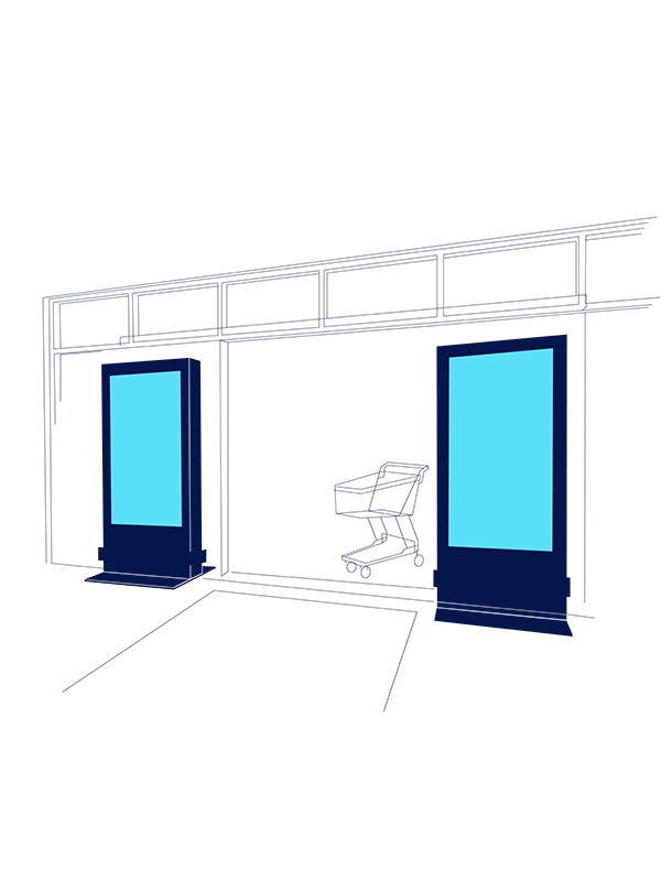 Unsere DCLP bilden ein goldenes Tor am Supermarkteingang – und genau hier wirkt deine Werbung.